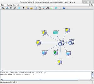 Cartographer's main window includes facilities for loading and unloading topographies, and launching views into portions of the distributed system.