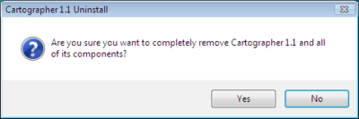 First, Windows asks you if you really meant to select Cartographer for uninstall. Select Yes to continue.